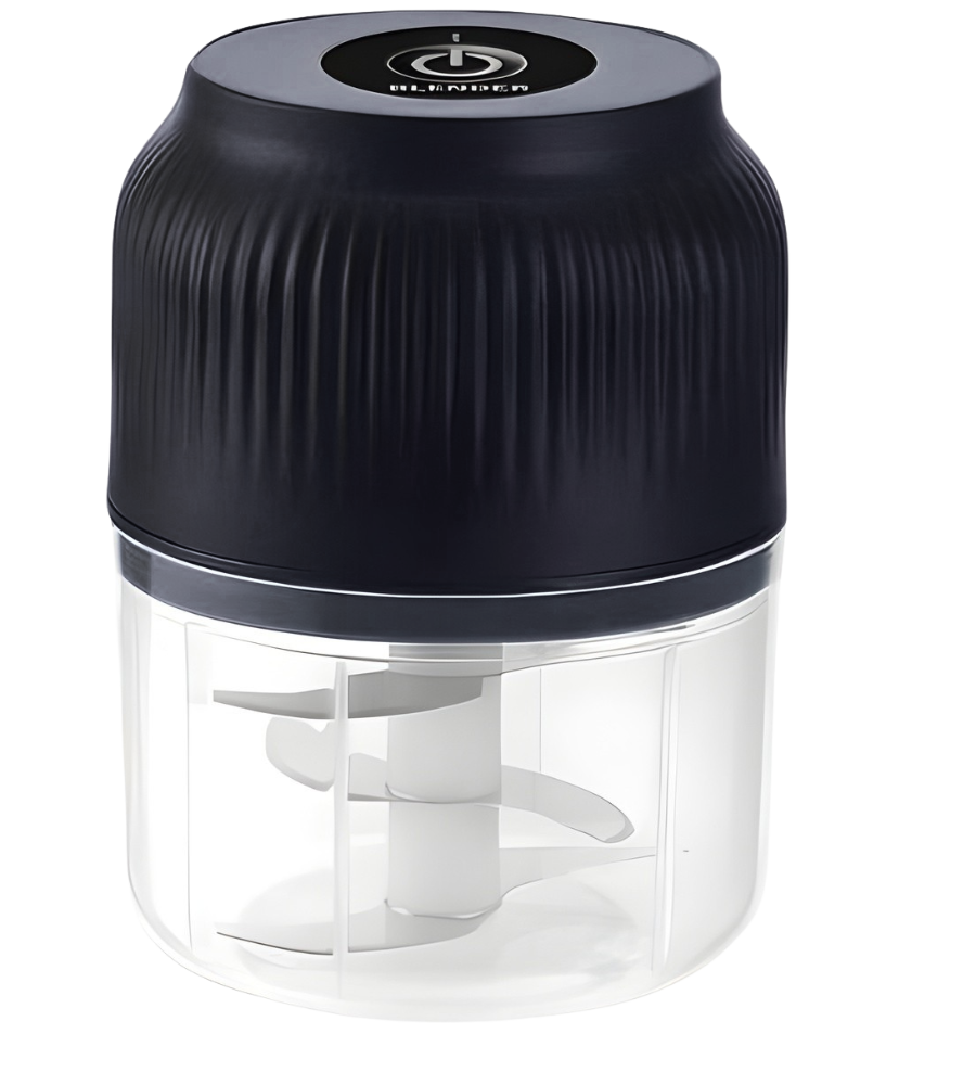 Portable electric mini chopper with USB rechargeable design, created to make everyday kitchen tasks easier. Its compact and lightweight size makes it ideal for chopping small amounts of ingredients such as garlic, ginger, onions, peppers, carrots, nuts, and more.